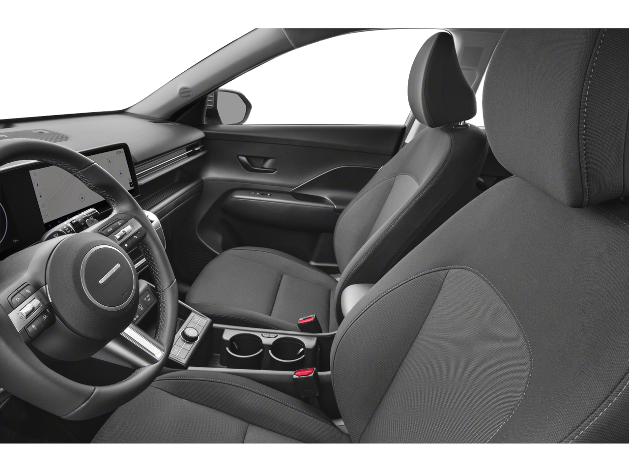 Equipped with Option Group 01, 4-Wheel Disc Brakes, 6 Speakers, ABS brakes, Air Conditioning, Alloy wheels, AM/FM radio: SiriusXM, Apple CarPlay & Android Auto, Auto High-beam Headlights, Automatic temperature control, Brake assist, Bumpers: body-color, Cargo Blocks, Cargo Net, Cargo Tray, Carpeted Floor Mats, Cloth Seat Trim, Compass, Delay-off headlights, Driver door bin, Driver vanity mirror, Dual front impact airbags, Dual front side impact airbags, Electronic Stability Control, Emergency communication system: Bluelink+, First Aid Kit, Front anti-roll bar, Front Bucket Seats, Front Center Armrest w/Storage, Front dual zone A/C, Front wheel independent suspension, Fully automatic headlights, Heated door mirrors, Heated Front Bucket Seats, Heated front seats, Illuminated entry, Leather steering wheel, Low tire pressure warning, Navigation System, Occupant sensing airbag, Overhead airbag, Panic alarm, Passenger door bin, Passenger vanity mirror, Power door mirrors, Power driver seat, Power steering, Power windows, Radio: AM/FM/SiriusXM/HD Radio Audio System, Rear seat center armrest, Rear window defroster, Rear window wiper, Remote keyless entry, Security system, Speed control, Speed-sensing steering, Split folding rear seat, Spoiler, Steering wheel mounted audio controls, Telescoping steering wheel, Tilt steering wheel, Traction control, Trip computer, Turn signal indicator mirrors, Variably intermittent wipers, Vehicle Load Adapter (DISC), and Wheels: 17 x 7.0J Aero Alloy. 129/103 City/Highway MPG