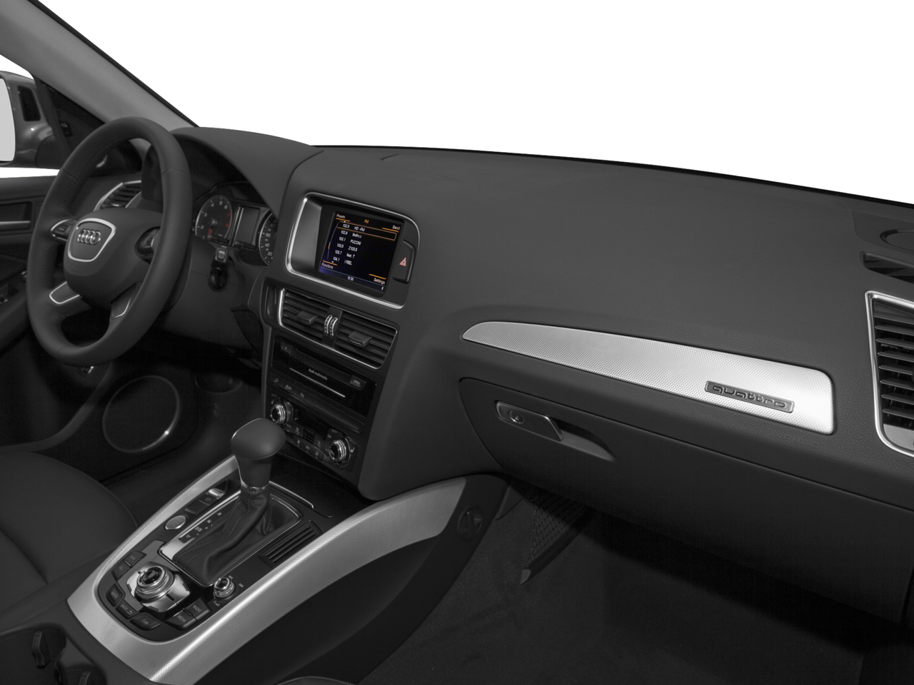 Equipped with Leather, 10 Speakers, 2.84 Axle Ratio, 4-Wheel Disc Brakes, ABS brakes, Air Conditioning, Alloy wheels, AM/FM radio, Automatic temperature control, Brake assist, Bumpers: body-color, CD player, Delay-off headlights, Driver door bin, Driver vanity mirror, Dual front impact airbags, Dual front side impact airbags, Electronic Stability Control, Four wheel independent suspension, Front anti-roll bar, Front Bucket Seats, Front Center Armrest, Front dual zone A/C, Front fog lights, Front reading lights, Garage door transmitter: HomeLink, Genuine wood console insert, Genuine wood dashboard insert, Genuine wood door panel insert, Heated door mirrors, High intensity discharge headlights: Xenon plus, Illuminated entry, Leather Seating Surfaces, Leather Shift Knob, Leather steering wheel, Low tire pressure warning, Occupant sensing airbag, Outside temperature display, Overhead airbag, Overhead console, Panic alarm, Passenger door bin, Passenger vanity mirror, Power door mirrors, Power driver seat, Power Front Bucket Seats, Power Liftgate, Power moonroof, Power passenger seat, Power steering, Power windows, Radio data system, Radio: MMI Plus System w/6.5 Color Screen, Rain sensing wipers, Rear air conditioning, Rear anti-roll bar, Rear fog lights, Rear reading lights, Rear seat center armrest, Rear window defroster, Rear window wiper, Remote keyless entry, Roof rack, Security system, Speed control, Speed-sensing steering, Speed-Sensitive Wipers, Split folding rear seat, Spoiler, Steering wheel mounted audio controls, Tachometer, Telescoping steering wheel, Tilt steering wheel, Traction control, Trip computer, Turn signal indicator mirrors, Variably intermittent wipers, and Wheels: 8.0 x 18 5-V-Spoke-Design.