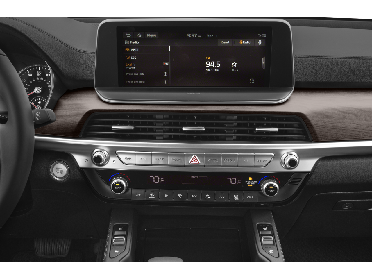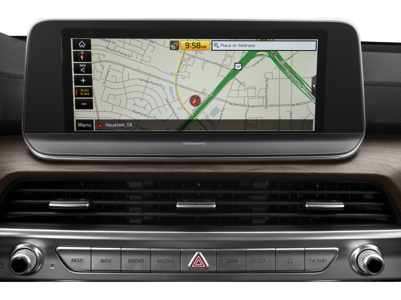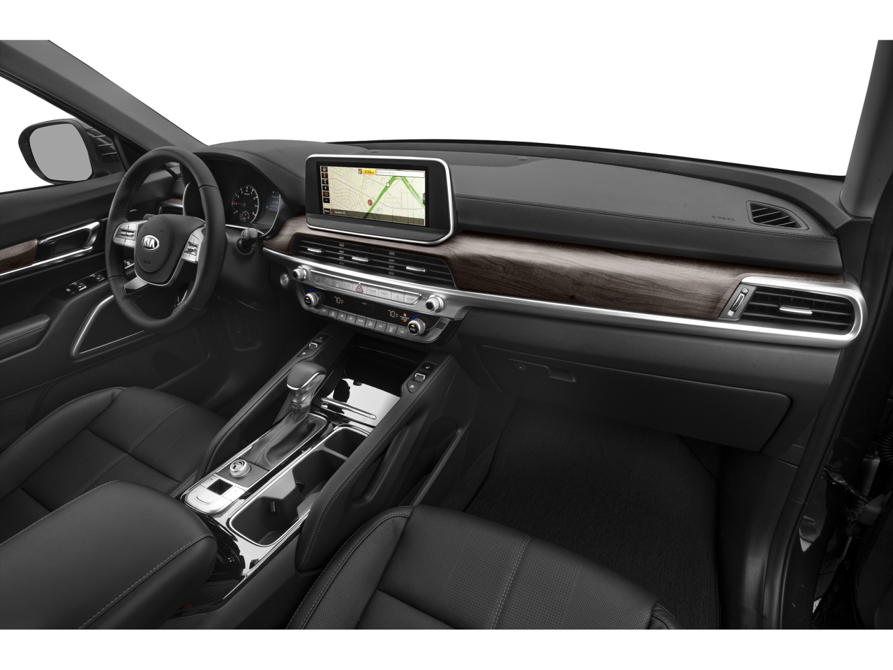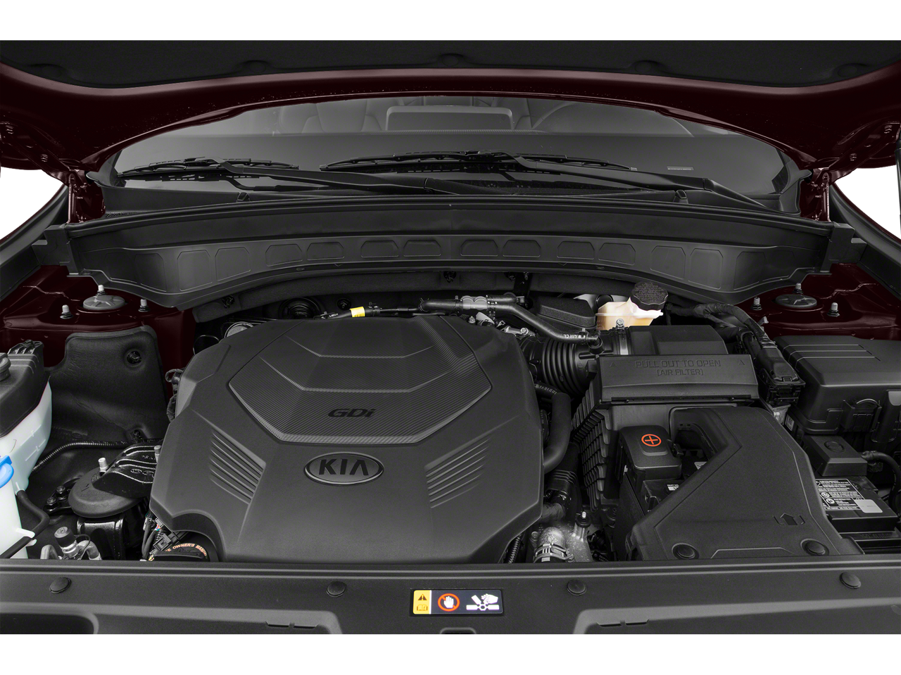 Equipped with EX Premium Package (2nd Row Captain Chairs, LED Headlamps, Satin Chrome Roof Rails, and Wheels: 7.5 x 20 Machined Finish Alloy), Nightfall Edition Package (Black Finish Radiator Grille, Exclusive Black Headlight Bezels, Front & Rear Gloss Black Finish Bumper Skid Plates, Front & Rear KIA Logo, Gloss Black Finish Exterior Emblems, Gloss Black Finish Front & Rear Door Garnish, Gloss Black Finish Roof Rails, and Wheels: 7.5 x 20 Exclusive Black Finish Alloy), Towing Package (Self Leveling Rear Suspension and Tow Hitch w/Harness (TOF)), 3.648 Axle Ratio, 3rd row seats: split-bench, 4-Wheel Disc Brakes, 6 Speakers, ABS brakes, Air Conditioning, Alloy wheels, AM/FM radio: SiriusXM, Apple CarPlay & Android Auto, Auto-dimming Rear-View mirror, Automatic temperature control, Brake assist, Bumpers: body-color, Cargo Net, Cargo Seatback Up Mat, Carpeted Floor Mats, Compass, Delay-off headlights, Driver door bin, Driver vanity mirror, Dual front impact airbags, Dual front side impact airbags, Electronic Stability Control, Emergency communication system: 911 Connect, Four wheel independent suspension, Front anti-roll bar, Front Bucket Seats, Front Center Armrest, Front dual zone A/C, Front reading lights, Fully automatic headlights, Heated & Ventilated Front Bucket Seats, Heated door mirrors, Heated front seats, Heated steering wheel, Illuminated entry, Knee airbag, Leather Seat Trim, Leather Shift Knob, Leather steering wheel, Low tire pressure warning, Multicolored Interior Light Kit, Navigation System, Occupant sensing airbag, Outside temperature display, Overhead airbag, Overhead console, Panic alarm, Passenger door bin, Passenger vanity mirror, Power door mirrors, Power driver seat, Power Liftgate, Power moonroof, Power passenger seat, Power steering, Power windows, Radio data system, Radio: AM/FM/SIRIUS Display Audio, Rear air conditioning, Rear anti-roll bar, Rear audio controls, Rear reading lights, Rear seat center armrest, Rear window defroster, Rear window wiper, Reclining 3rd row seat, Remote keyless entry, Roof rack: rails only, Security system, Side Step Bars, Smart Key w/ Push Button and Remote Start, Speed control, Speed-sensing steering, Split folding rear seat, Spoiler, Steering wheel mounted audio controls, Tachometer, Telescoping steering wheel, Tilt steering wheel, Traction control, Trip computer, Turn signal indicator mirrors, Variably intermittent wipers, Ventilated front seats, and Wheels: 7.5 x 18 Machined Finish Alloy.