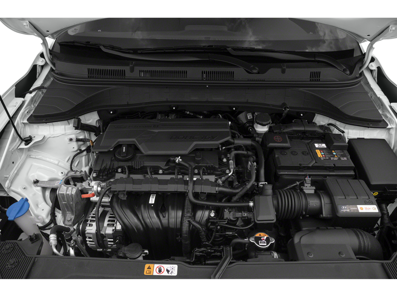 Equipped with Cargo Package (Cargo Net and Cargo Tray), Option Group 01, 4-Wheel Disc Brakes, 5.715 Axle Ratio, 6 Speakers, ABS brakes, Air Conditioning, Alloy wheels, AM/FM radio: SiriusXM, Apple CarPlay & Android Auto, Brake assist, Bumpers: body-color, Carpeted Floor Mats, Cloth Seat Trim, Delay-off headlights, Driver door bin, Driver vanity mirror, Dual front impact airbags, Dual front side impact airbags, Electronic Stability Control, Emergency communication system: Blue Link Connected Car Service (3-year complimentary subscription), Exterior Parking Camera Rear, Front anti-roll bar, Front Bucket Seats, Front Center Armrest, Front reading lights, Front wheel independent suspension, Fully automatic headlights, Heated door mirrors, Illuminated entry, Low tire pressure warning, Occupant sensing airbag, Overhead airbag, Overhead console, Panic alarm, Passenger door bin, Passenger vanity mirror, Power door mirrors, Power steering, Power windows, Radio: AM/FM/HD Radio/SiriusXM Audio System, Rear seat center armrest, Rear window defroster, Rear window wiper, Remote keyless entry, Security system, Speed control, Speed-sensing steering, Split folding rear seat, Spoiler, Steering wheel mounted audio controls, Tachometer, Telescoping steering wheel, Tilt steering wheel, Traction control, Trip computer, Turn signal indicator mirrors, Variably intermittent wipers, and Wheels: 17 x 7.0J Alloy.