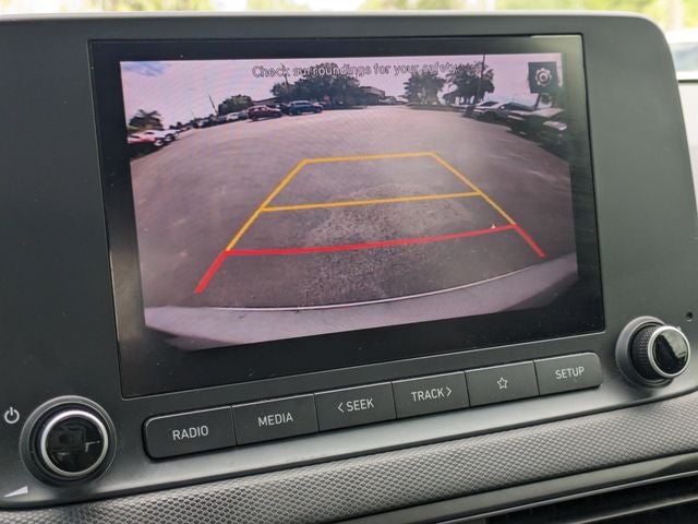 Equipped with Option Group 01, 17 x 7.0J Alloy Wheels, 4-Wheel Disc Brakes, 5.715 Axle Ratio, 6 Speakers, ABS brakes, Air Conditioning, Alloy wheels, AM/FM radio: SiriusXM, Apple CarPlay & Android Auto, Brake assist, Bumpers: body-color, Cargo Net, Cargo Tray, Carpeted Floor Mats, Cloth Seat Trim, Delay-off headlights, Driver door bin, Driver vanity mirror, Dual front impact airbags, Dual front side impact airbags, Electronic Stability Control, Emergency communication system: Blue Link Connected Car Service (3-year complimentary subscription), Exterior Parking Camera Rear, First Aid Kit, Front & Rear Mudguards, Front anti-roll bar, Front Bucket Seats, Front Center Armrest, Front reading lights, Front wheel independent suspension, Fully automatic headlights, Heated door mirrors, Illuminated entry, Low tire pressure warning, Occupant sensing airbag, Outside temperature display, Overhead airbag, Overhead console, Panic alarm, Passenger door bin, Passenger vanity mirror, Power door mirrors, Power driver seat, Power steering, Power windows, Radio: AM/FM/HD/SiriusXM Audio System, Rear seat center armrest, Rear window defroster, Rear window wiper, Remote keyless entry, Security system, Speed control, Speed-sensing steering, Split folding rear seat, Spoiler, Steering wheel mounted audio controls, Tachometer, Telescoping steering wheel, Tilt steering wheel, Traction control, Trip computer, Turn signal indicator mirrors, and Variably intermittent wipers.