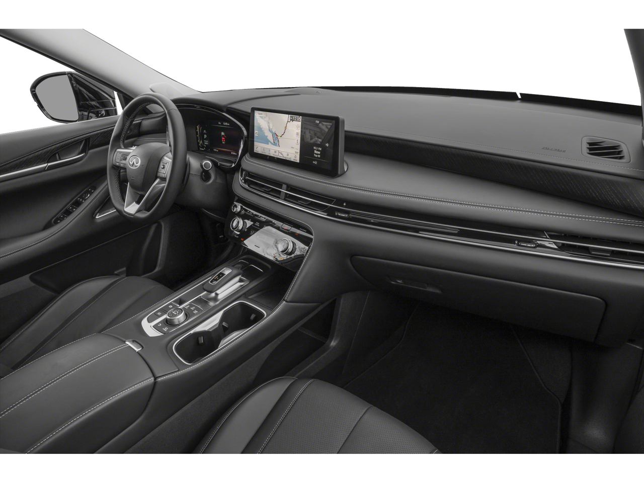 Equipped with Vision Package (10.8 Head-Up Display, Adaptive Front Lighting System, and Smart Rear View Mirror), 17 Speakers, 3rd row seats: bench, 4-Wheel Disc Brakes, 4.334 Axle Ratio, ABS brakes, Air Conditioning, Alloy wheels, AM/FM radio: SiriusXM, Anti-whiplash front head restraints, Auto High-beam Headlights, Auto-dimming door mirrors, Auto-dimming Rear-View mirror, Automatic temperature control, Bose Performance Series 17-Speaker Sound System, Brake assist, Bumpers: body-color, Climate-Controlled Front Bucket Seats, Delay-off headlights, Driver door bin, Driver vanity mirror, Dual front impact airbags, Dual front side impact airbags, Electronic Stability Control, Emergency communication system, Floor Mats on Bench Seats w/3rd Row Tray, Four wheel independent suspension, Front anti-roll bar, Front Bucket Seats, Front Center Armrest, Front dual zone A/C, Front reading lights, Fully automatic headlights, Garage door transmitter: HomeLink, Heated door mirrors, Heated front seats, Heated rear seats, Heated steering wheel, Illuminated entry, Illuminated Kick Plate, Knee airbag, Leather Shift Knob, Leather steering wheel, Leather-Appointed Seating Surfaces, Literature Kit, Low tire pressure warning, Memory seat, Navigation system: INFINITI InTouch Navigation, Occupant sensing airbag, Outside temperature display, Overhead airbag, Overhead console, Panic alarm, Passenger door bin, Passenger vanity mirror, Power door mirrors, Power driver seat, Power Liftgate, Power moonroof, Power passenger seat, Power steering, Power windows, Radio data system, Radio: AM/FM Audio System, Rain sensing wipers, Rear air conditioning, Rear anti-roll bar, Rear reading lights, Rear seat center armrest, Rear side impact airbag, Rear window defroster, Rear window wiper, Reclining 3rd row seat, Remote keyless entry, Security system, Speed control, Speed-sensing steering, Speed-Sensitive Wipers, Splash Guards, Split folding rear seat, Spoiler, Steering wheel memory, Steering wheel mounted audio controls, Tachometer, Telescoping steering wheel, Tilt steering wheel, Traction control, Trip computer, Turn signal indicator mirrors, Variably intermittent wipers, Ventilated front seats, and Wheels: 20 x 8J Luxury Machined Aluminum Alloy.