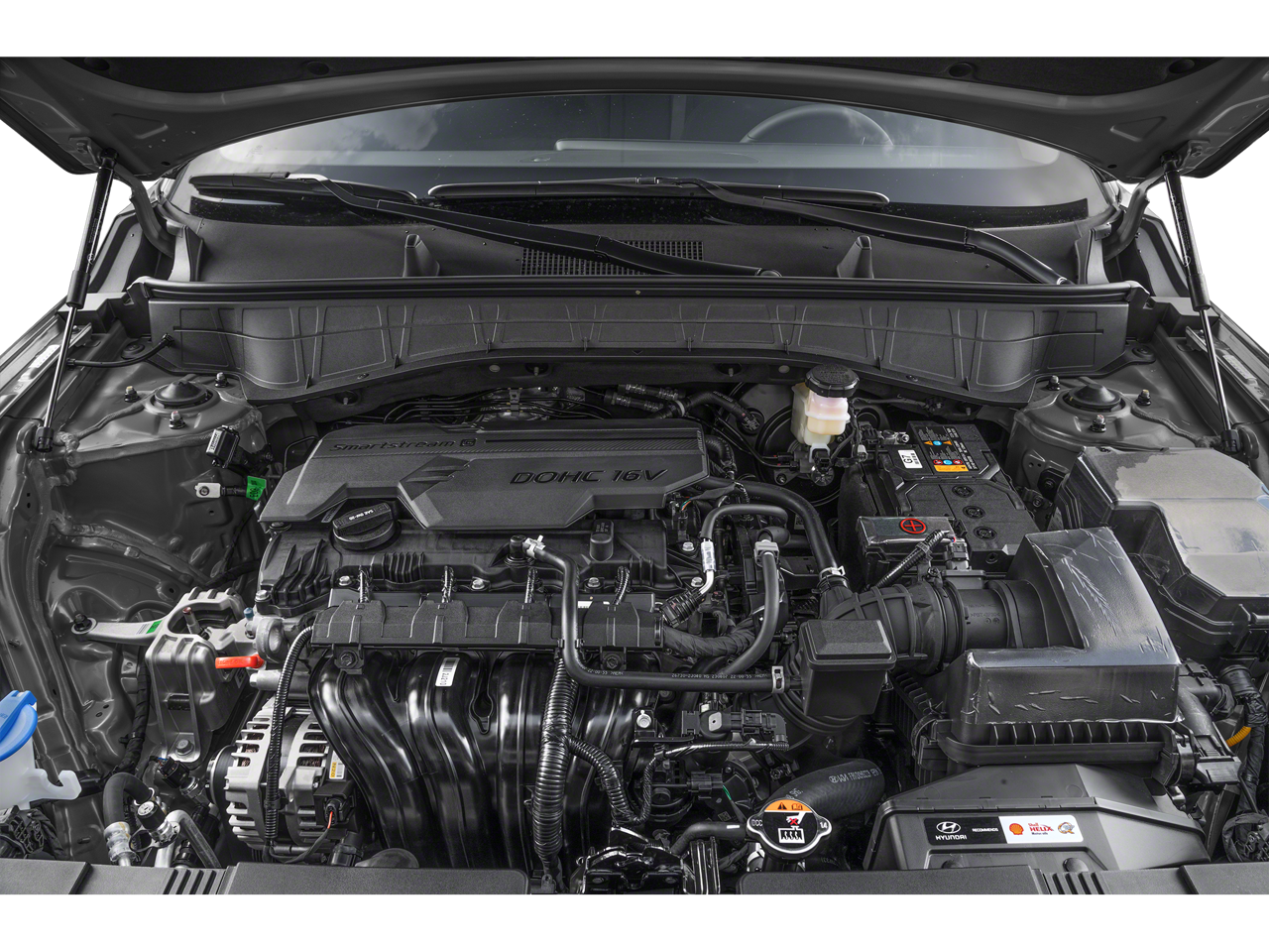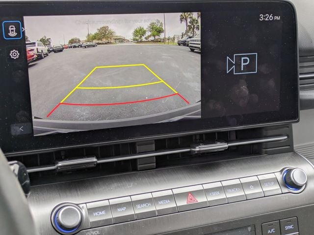 Equipped with Option Group 01, 4-Wheel Disc Brakes, 6 Speakers, 6.052 Axle Ratio, ABS brakes, Air Conditioning, Alloy wheels, AM/FM radio: SiriusXM, Apple CarPlay & Android Auto, Auto High-beam Headlights, Automatic temperature control, Brake assist, Bumpers: body-color, Cargo Net, Carpeted Floor Mats, Cloth Seat Trim, Cross Rails, Delay-off headlights, Driver door bin, Driver vanity mirror, Dual front impact airbags, Dual front side impact airbags, Electronic Stability Control, Emergency communication system: Bluelink+, Exterior Parking Camera Rear, First Aid Kit, Front anti-roll bar, Front Bucket Seats, Front Center Armrest, Front dual zone A/C, Front reading lights, Front wheel independent suspension, Fully automatic headlights, Heated door mirrors, Illuminated entry, Leather Shift Knob, Leather steering wheel, Low tire pressure warning, Occupant sensing airbag, Outside temperature display, Overhead airbag, Panic alarm, Passenger door bin, Passenger vanity mirror, Power door mirrors, Power driver seat, Power steering, Power windows, Radio: AM/FM/HD Radio/SiriusXM Audio System, Rear seat center armrest, Rear window defroster, Rear window wiper, Remote keyless entry, Security system, Speed control, Speed-sensing steering, Split folding rear seat, Spoiler, Steering wheel mounted audio controls, Tachometer, Telescoping steering wheel, Tilt steering wheel, Traction control, Trip computer, Turn signal indicator mirrors, Variably intermittent wipers, Wheel Locks, and Wheels: 18 x 7.0J Glossy Black Alloy.