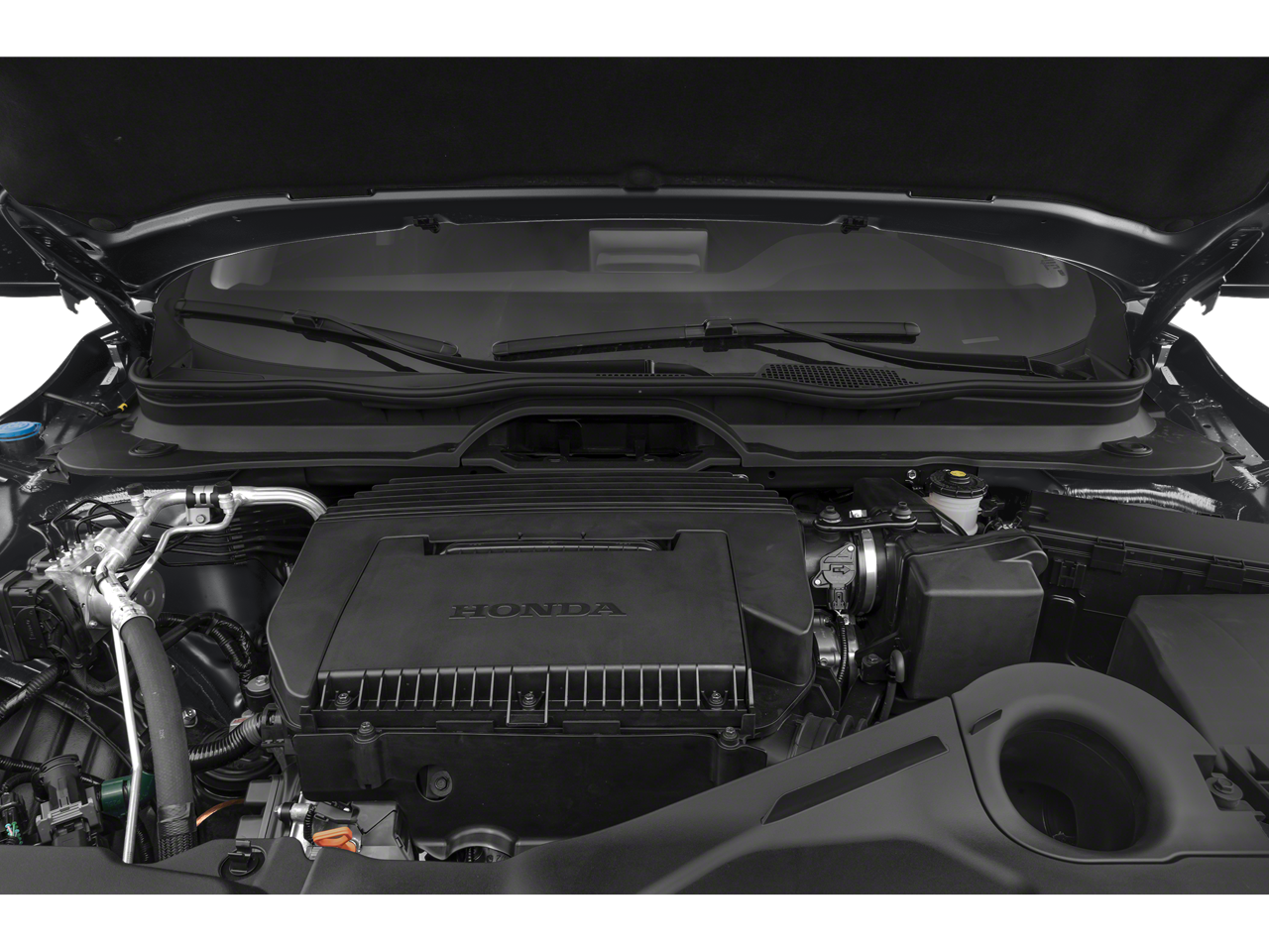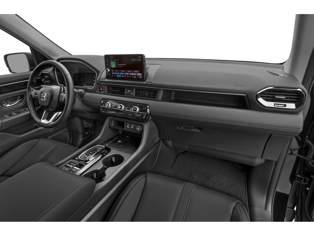 Equipped with 3rd row seats: split-bench, 4-Wheel Disc Brakes, 4.167 Axle Ratio, 9 Speakers, ABS brakes, Adaptive Cruise Control: Adaptive Cruise Control (ACC) with Low-Speed Follow, Air Conditioning, Alloy wheels, AM/FM radio: SiriusXM, Apple CarPlay/Android Auto, Auto High-beam Headlights, Auto-dimming Rear-View mirror, Automatic temperature control, Blind Spot Information (BSI) System warning, Brake assist, Bumpers: body-color, Delay-off headlights, Driver door bin, Driver vanity mirror, Dual front impact airbags, Dual front side impact airbags, Electronic Stability Control, Emergency communication system: HondaLink Assist, Exterior Parking Camera Rear, Four wheel independent suspension, Front anti-roll bar, Front Bucket Seats, Front Center Armrest, Front dual zone A/C, Front fog lights, Front reading lights, Fully automatic headlights, Garage door transmitter: HomeLink, Heated door mirrors, Heated Front Bucket Seats, Heated front seats, Illuminated entry, Knee airbag, Lane departure: Lane Keeping Assist System (LKAS) active, Leather Seat Trim, Low tire pressure warning, Memory seat, Occupant sensing airbag, Outside temperature display, Overhead airbag, Overhead console, Panic alarm, Passenger door bin, Passenger vanity mirror, Power door mirrors, Power driver seat, Power Liftgate, Power passenger seat, Power steering, Power windows, Radio data system, Radio: 245-Watt Audio System, Rear air conditioning, Rear anti-roll bar, Rear reading lights, Rear seat center armrest, Rear window defroster, Rear window wiper, Reclining 3rd row seat, Remote keyless entry, Security system, SiriusXM, Speed control, Speed-sensing steering, Speed-Sensitive Wipers, Split folding rear seat, Spoiler, Steering wheel mounted audio controls, Tachometer, Telescoping steering wheel, Tilt steering wheel, Traction control, Trip computer, Turn signal indicator mirrors, Variably intermittent wipers, and Wheels: 18 Pewter Gray Machined Face.